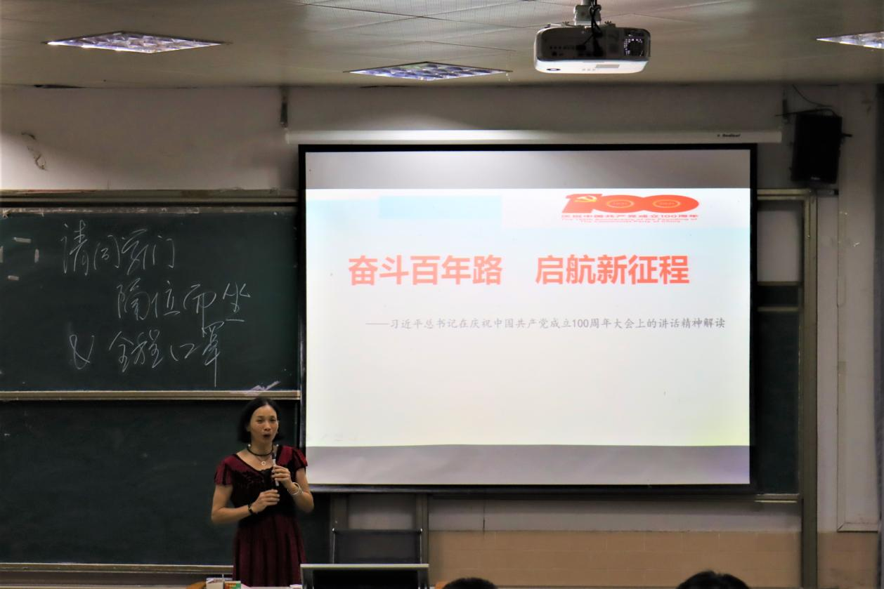 直属党支部书记宋美娴围绕主题“奋斗百年路 启航新征程”,为20级学生上了新学期第一堂思政课。