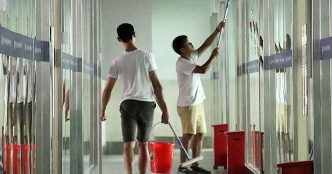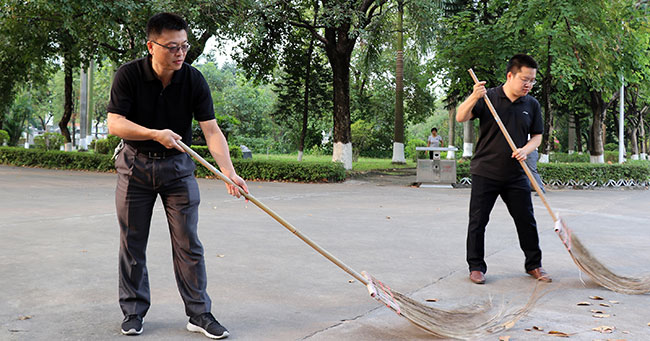 新学期劳作教育课程在莞城校区正式启动。学院院长陈伟、王春源、各系主任、职能部门老师、团总支学生会学主席团、2017级劳作模范以及学院2018级所有学生出席。