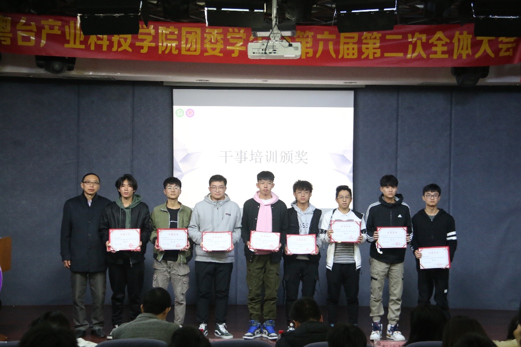 会议第三项为干部培训颁奖。为鼓励和表彰学生干事在团学干部培训中的优秀表现,我院副书记王玉分别为荣获第一、二、三名的各位干事颁发奖状。