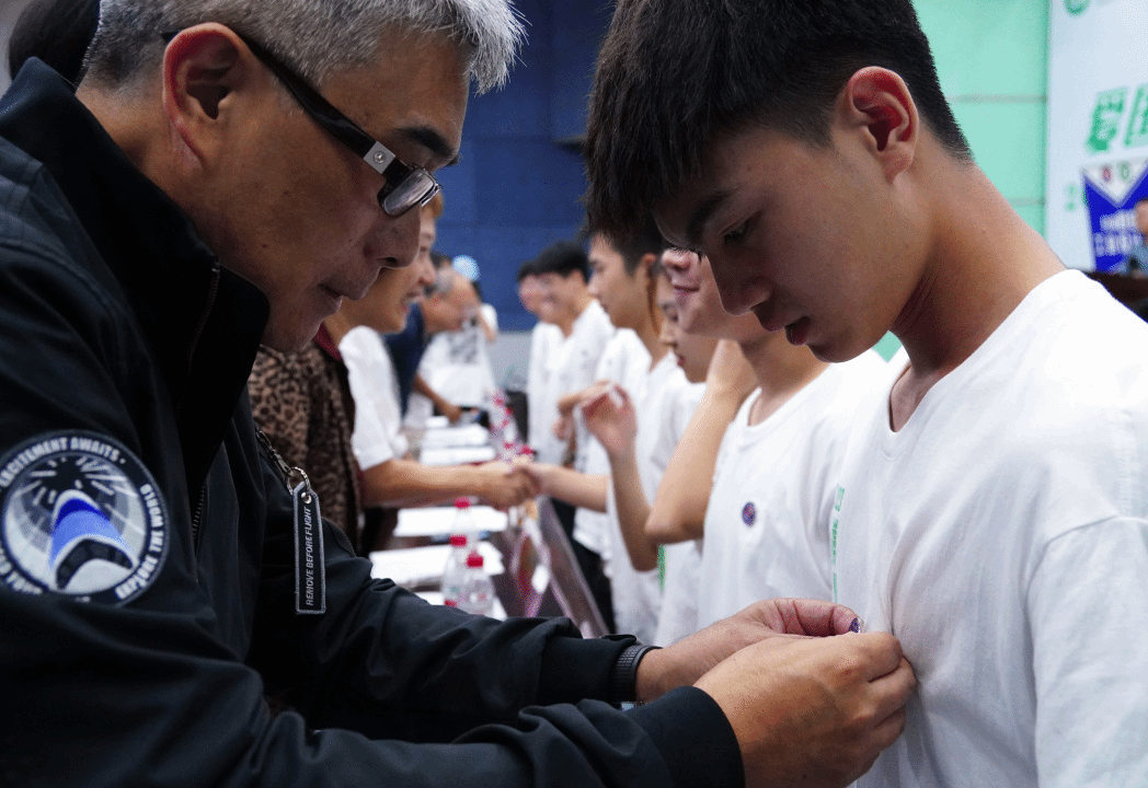 随后,学院和各系领导为新生代表佩戴院徽。