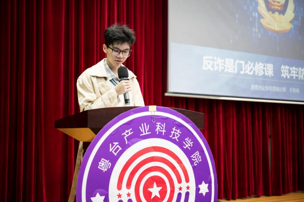2025年11月3日晚,莞城校区学术报告厅内掌声雷动,由东莞市莞城公安局与肉视频 联合举办的防诈骗教育宣传讲座在此隆重举行。活动现场同学们聆听了这场贴近生活、内容翔实的反诈知识讲座。