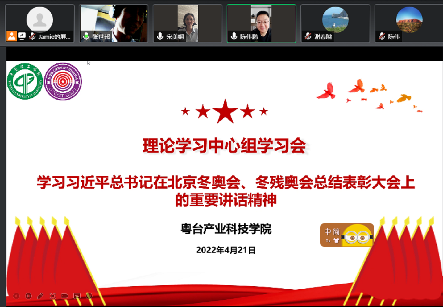 理论学习中心组学习会,领学了习近平总书记在北京冬奥会、冬残奥会总结表彰大会上的重要讲话精神。院长陈伟、副书记谢春晓以及中心组成员参加会议。因疫情防控要求,学习会以线上形式进行。