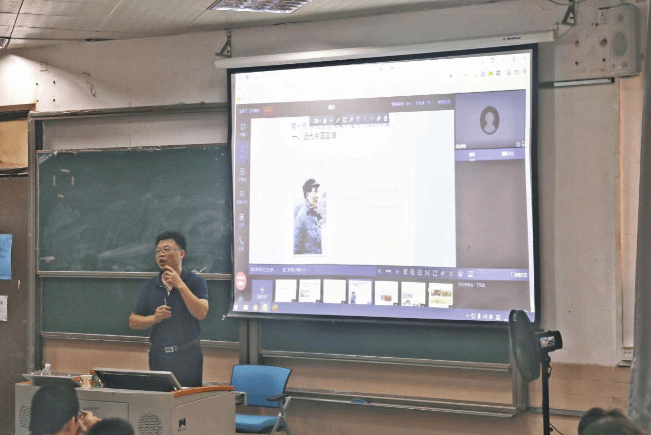 课上,陈伟院长就《毛泽东思想和中国特色社会主义理论体系概论》课程中“新民主主义革命理论”这一主题,以详实形象的案例、铿锵有力的语言和极富特色的教学方法,为21级三个班共127名学生上了一节生动的思政课。课堂上,陈伟院长从近代中国的国情入手,引申出近代中国社会的主要矛盾,从而解析了新民主主义革命理论及革命总纲领的深层含义与现实意义。在陈院长的带领学习之下,近代中国历史仿佛一幕幕重现在学生面前,使学生们了解了我国国情,并且正视历史、反思历史,学会以史为鉴,汲取其中的经验教训,为当今建设现代化中国献计献策。