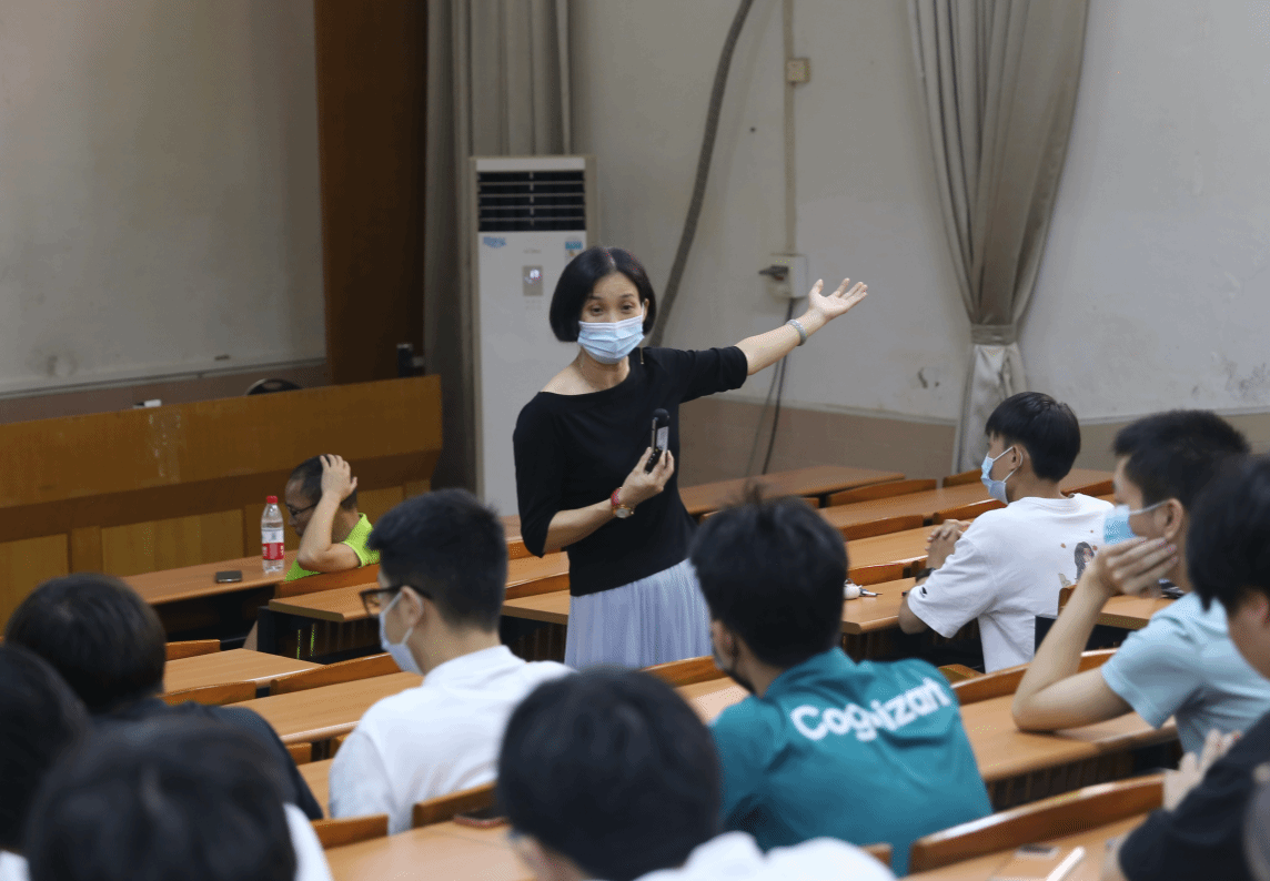 党委书记宋美娴在莞城校区五号教学楼一号教室给20级智能制造1、2班和20级经济与金融1、2班共105名学生上《形势与政策》思政课。