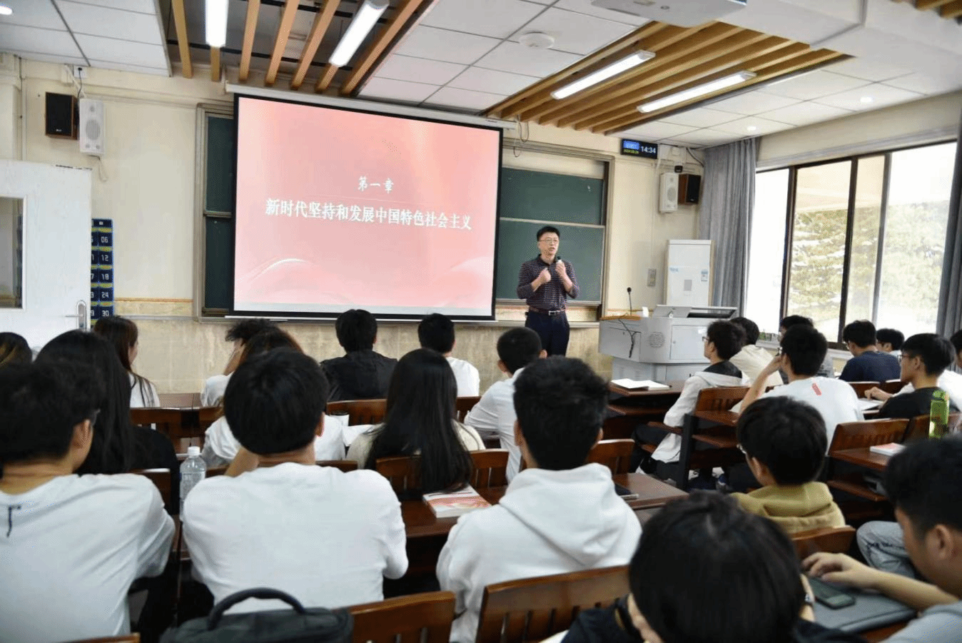 课堂最后,陈伟号召同学们不忘初心使命,努力学习,锐意进取,毕业后要立足本职工作,服务国家民族大局,为实现中华民族伟大复兴的中国梦贡献青春力量。