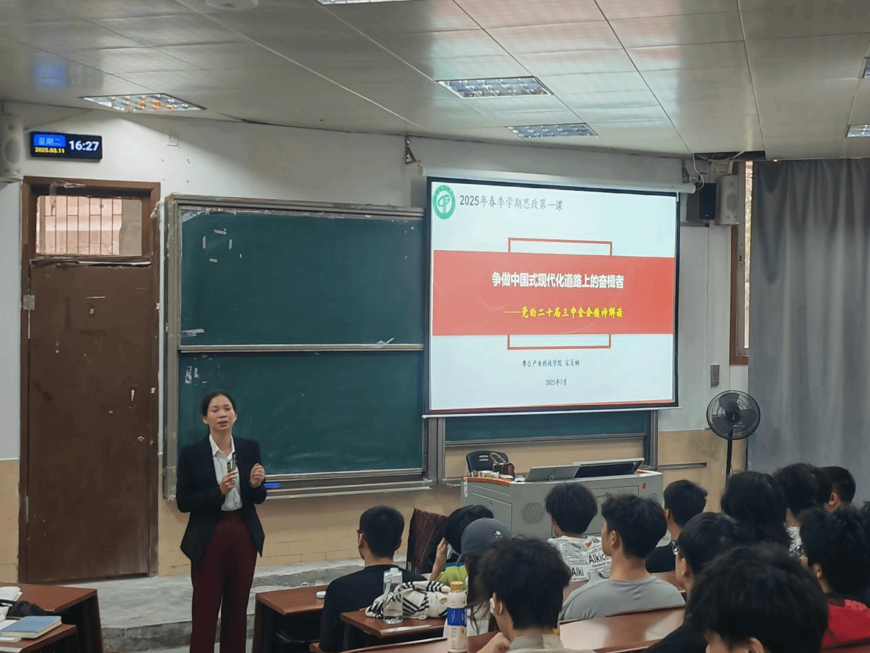 课上,宋美娴首先阐述了党的二十届三中全会在推进中国式现代化进程中的重大意义。通过深入浅出的讲解,详细解读了全会在经济、教育、科技、人才等多个领域所做出的重要决策部署。她特别指出,中国式现代化道路为当代青年提供了广阔的发展空间,激励学生们要将个人理想与国家发展紧密结合,树立远大志向,锤炼过硬本领,在实现中华民族伟大复兴的征程中书写属于自己的精彩篇章。