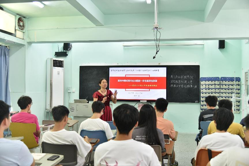 第十八期分党校入党积极分子培训班在莞城校区实验楼315多媒体课室正式开班。本次党课的主题是《紧扣中国式现代化主题进一步全面深化改革——党的二十届三中全会精神解读》,由学院党委书记宋美娴主讲。