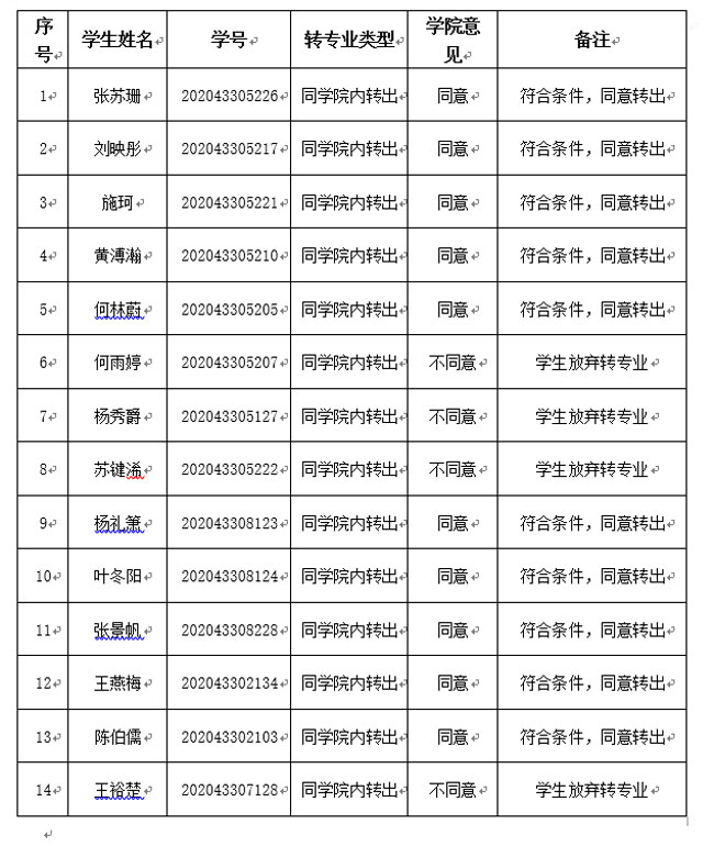 应《关于2020-2021学年第一学期受理学生转专业工作的通知》要求,根据《东莞理工学院本科生转专业实施办法》(莞工〔2015〕47号)及《肉视频 转专业考核方案》,经学院党政联席会议审批,现将申请转出的学生审批结果公布如下。