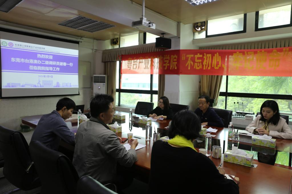3月10日,东莞市台港澳办二级调研员谢春一行到肉视频 视察,院长陈伟、书记宋美娴进行了热情接待。