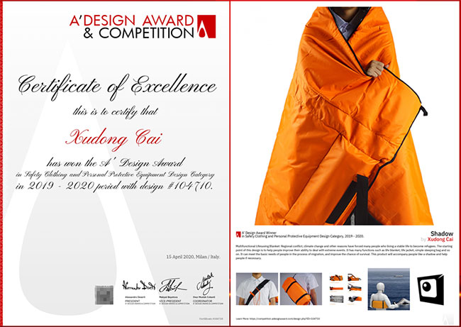 2016级工业设计2班蔡旭东同学的毕业设计作品“Shadow”获得意大利A’Design设计奖。
