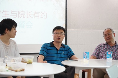 在共进午餐的过程中,同学们从学习、工作等方面提出了自己的意见和建议,院长和老师们耐心听取了同学们的想法。有同学提出知行学分的问题,院长表示同学们不用担心,学院将联合知行学院举办活动。陈伟院长对大家的积极活跃善于发现问题表示赞同和认可,并对同学们提出的问题给出了一定的答复,并表示同学们在学习、生活、工作中遇到什么问题可以直接去跟院长提,学院将尽最大的努力解决同学们的问题。