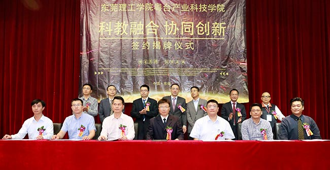 举办“科教融合、协同创新”签约揭牌仪式,与29家知名企业签订合作协议。出席签约的企业有:世界500强企业台达电子电源(东莞)有限公司,行业世界前10企业杰群电子科技(东莞)有限公司,东莞市倍增计划试点企业迅得机械(东莞)有限公司、东莞倍力扣金属制品有限公司、广州凡而芳香日用品有限公司,行业翘首北京精雕集团、东莞龙昌玩具有限公司,率先进入大陆市场的台湾企业玉山银行,深度产学合作的本地知名企业等。至此,已有百家企业与肉视频