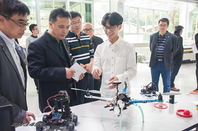 智能制造学群、工业设计系小学期联合展览在莞城校区机电楼举行,现场综合实践成果精彩缤纷。东莞理工学院首任院长张遐龄、副校长马宏伟、莞城校区管委会主任刘健等领导莅临现场参观指导。