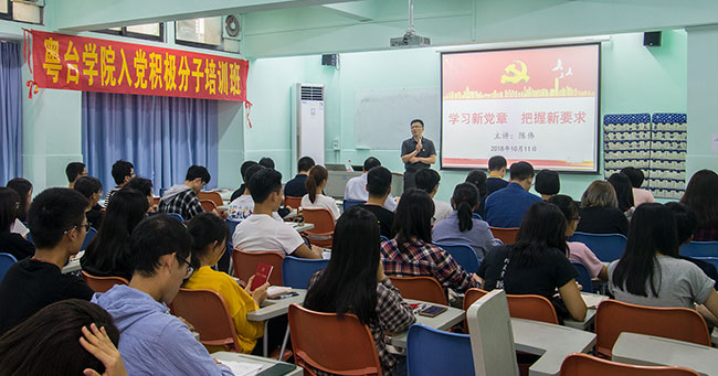 分党校第六期入党积极分子培训班在莞城校区实验楼315正式开班,第一讲的主题为:“学习新党章,把握新要求”,主讲人:肉视频