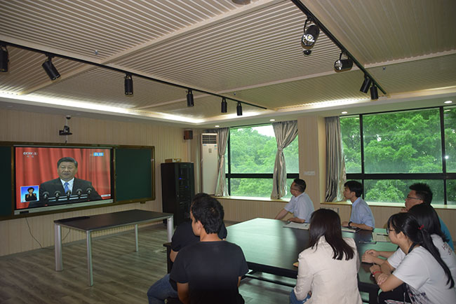 组织教工、学生党员集中收看大会直播实况,聆听习近平总书记重要讲话,缅怀“千年第一思想家”马克思的伟大人格和历史功绩,重温马克思的崇高精神和光辉思想。