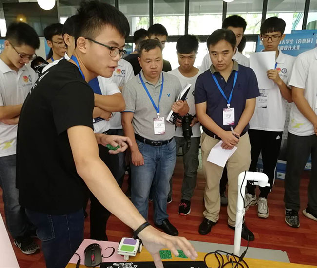 广东省大学生“合泰杯”单片机应用设计竞赛是由广东省本科高校机械基础课程教学指导委员会东莞松山湖(生态园)管委会主办,由广东工业大学承办,每年举办一次,今年是第六届,本届比赛吸引了华南师范大学、华南农业大学、广东工业大学、汕头大学、五邑大学、东莞理工学院等11所高校的160支队伍,近700名本科生报名参赛,收到设计方案 160 份,经专家评审,确定67支队伍进入最终决赛。(文/图 陈尚彦)