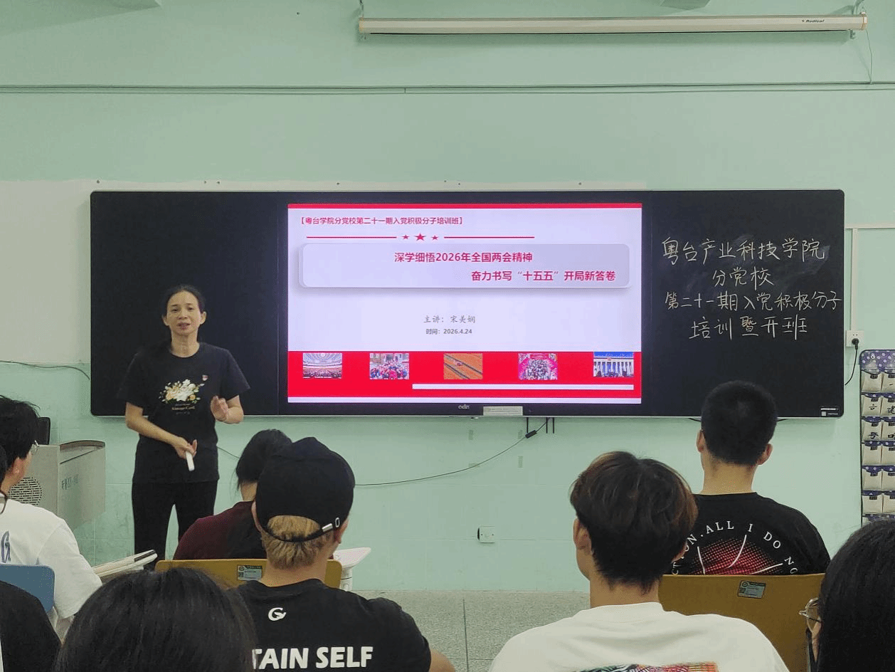 分党校第二十一期入党积极分子培训班在莞城校区实验楼314教室正式开班。学院党委书记宋美娴以“深学细悟2026年全国两会精神 奋力书写‘十五五’开局新答卷”为主题,为入党积极分子讲授专题党课。