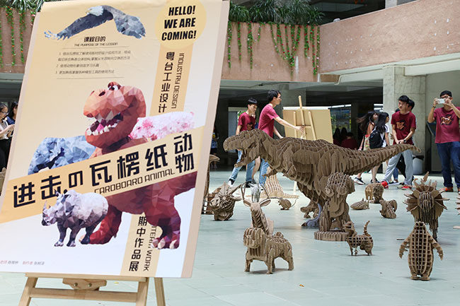 工业设计系举办的“进击的瓦楞纸动物”期中作品快闪活动。