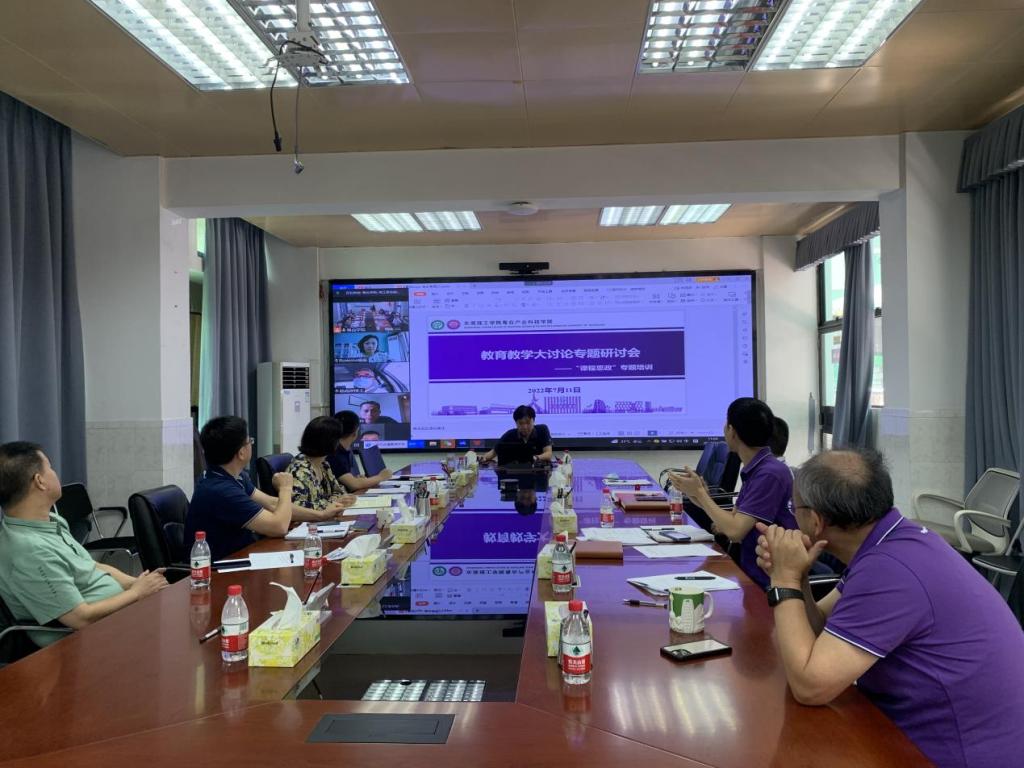 以线上线下相结合的方式召开教育教学大讨论“课程思政”专题培训,邀请马克思主义学院夏志有博士主讲。院长陈伟、党委书记宋美娴、副书记兼副院长谢春晓、副院长李奇及全院教职工参加。
