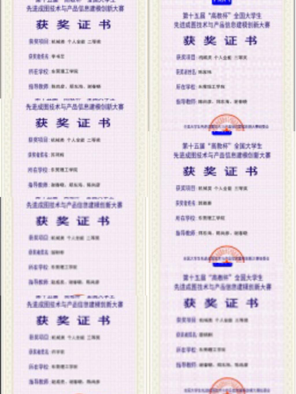 我院学生翁耿彬、苏邓辉、李书茳、陈家伟、雷镇桐、许宇钦、郭雅惠等七位同学,在参加成图比赛省赛获得国赛参加资格后,继续在我院谢春晓博士、陈尚彦博士及机械学院郑东海博士、赵成亮博士的指导下,利用暑期积极培训,积累成图比赛的实战经验,最终在成图比赛国赛的赛场上取得了优异成绩, 获得国赛3个二等奖、4个三等奖。